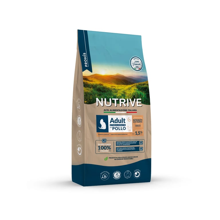 Alimento superpremium integrato con taurina per le sue proprietà antiossidanti, digestive e per i benefici generali legati al fabbisogno del gatto di questo importante amminoacido. Questo alimento è caratterizzato da una cottura a basse temperature che permette di salvaguardare le proprietà organolettiche del prodotto.